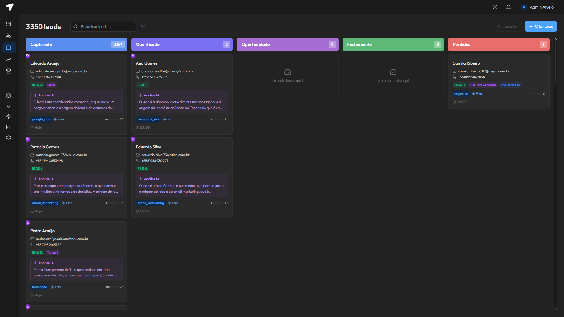 O Aivelo analisa cada lead em tempo real e entrega para sua equipe uma lista priorizada com ação recomendada para cada oportunidade.
